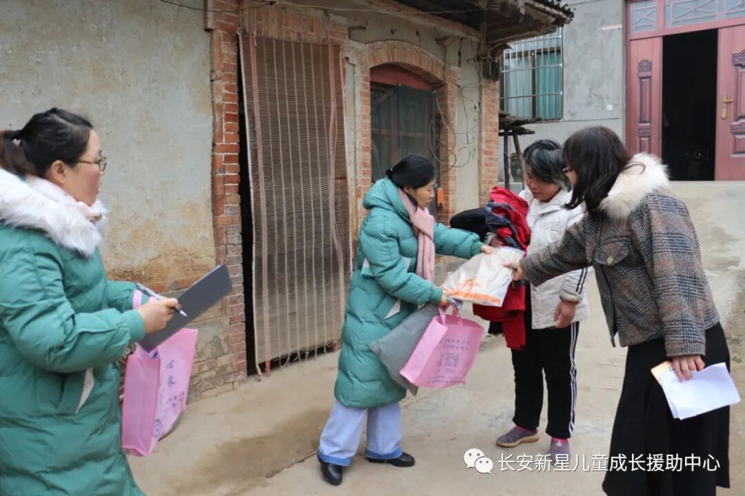 中心工作人员于2020年1月10日、14日、17日、5月10日组织4次爱心衣物发放活动,通过主题安全教育、外展家访等形式将37件鸿星尔克牌爱心衣物发放给陕西省西安市长安区29名贫困家庭儿童,让他们感受到了来自社会大家庭的关爱。